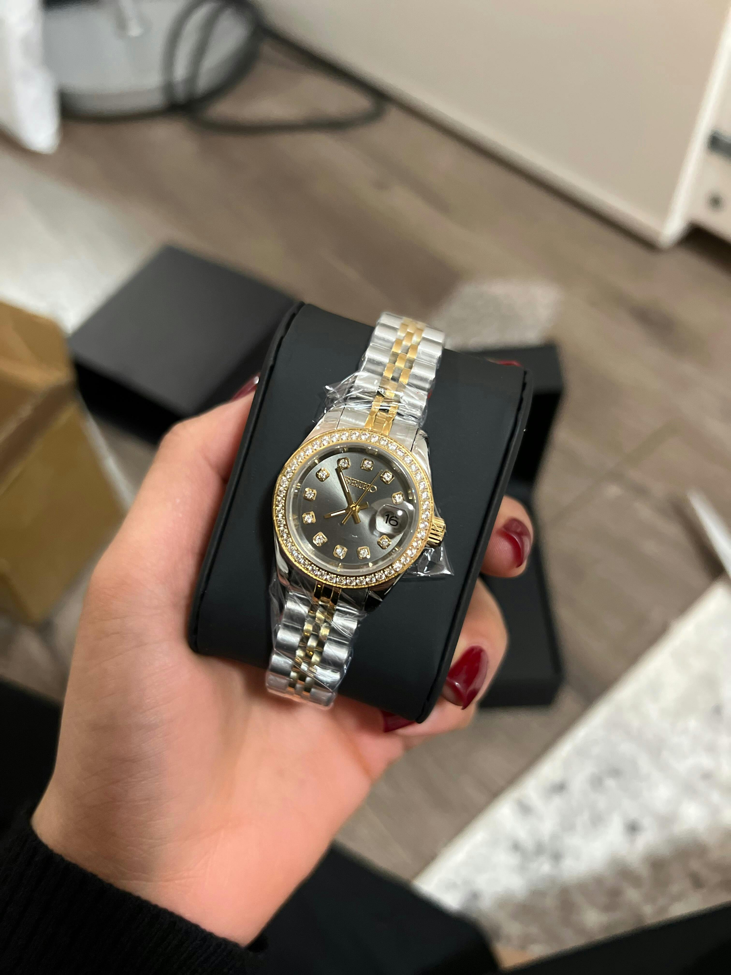 This watch is so timeless and classy and looks just like the photo. My watch arrived within 2 weeks and I couldn’t stop staring at it!! I definitely recommend purchasing this