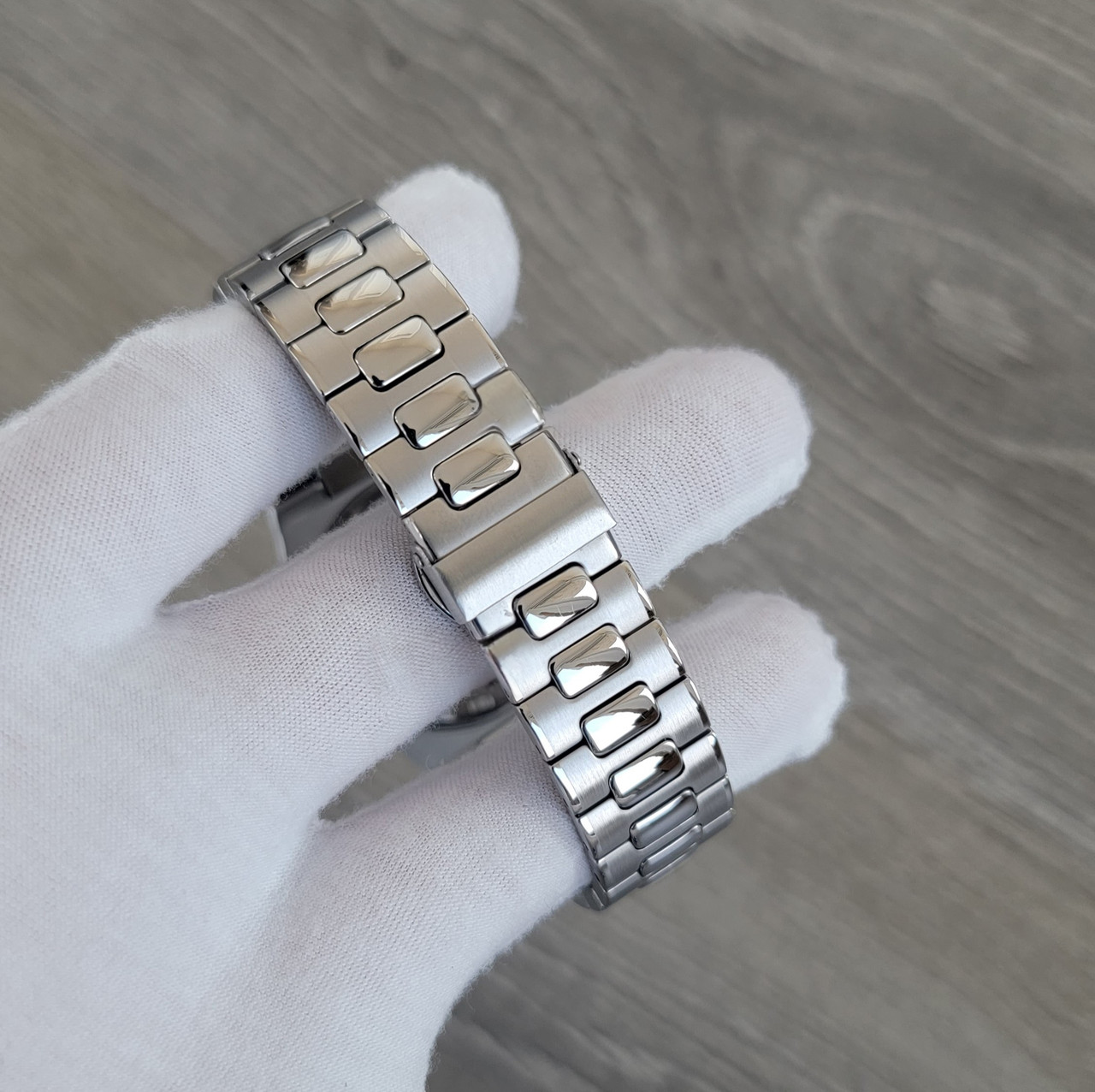 This exquisite timepiece features a blue gradient embossed textured dial, creating a mesmerizing interplay of light and depth. Powered by the trusted NH35 automatic movement, it ensures precise and reliable performance. The 40mm case with a 12mm thickness strikes the perfect balance between presence and comfort. A clear sapphire glass case back showcases the intricate movement within, adding a touch of horological artistry. Designed for durability, the watch boasts 10 ATM water resistance and a scratch-resistant sapphire crystal for enhanced clarity and resilience. Completing the design, the stainless steel bracelet with a fold-over butterfly clasp offers a secure and refined fit, making this timepiece a statement of both sophistication and function.